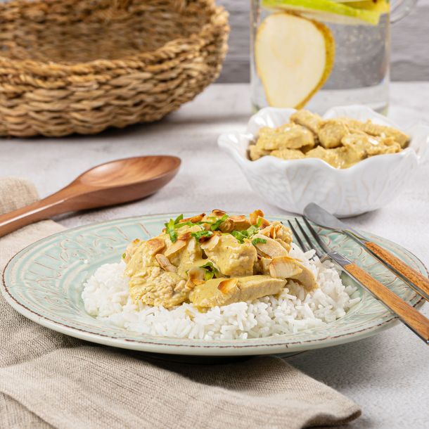 Tirinhas de peru com molho de coco